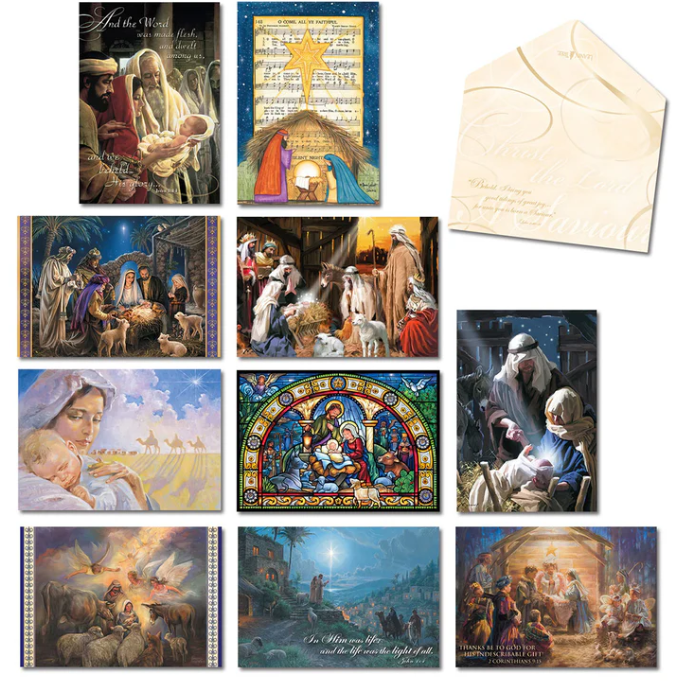 Celebrate the season with The Christmas Story Boxed Christmas Card Assortment, featuring 20 beautifully designed cards in 10 unique styles—perfect for spreading holiday cheer to friends, family, and colleagues. Each set includes 22 coordinating envelopes and comes in an elegant portfolio. Printed on sustainably sourced paper with soy-based inks, this assortment combines festive charm with eco-friendly values. Proudly made in the USA by Leanin' Tree it's the ideal way to send warm wishes and brighten the holidays for everyone on your list.