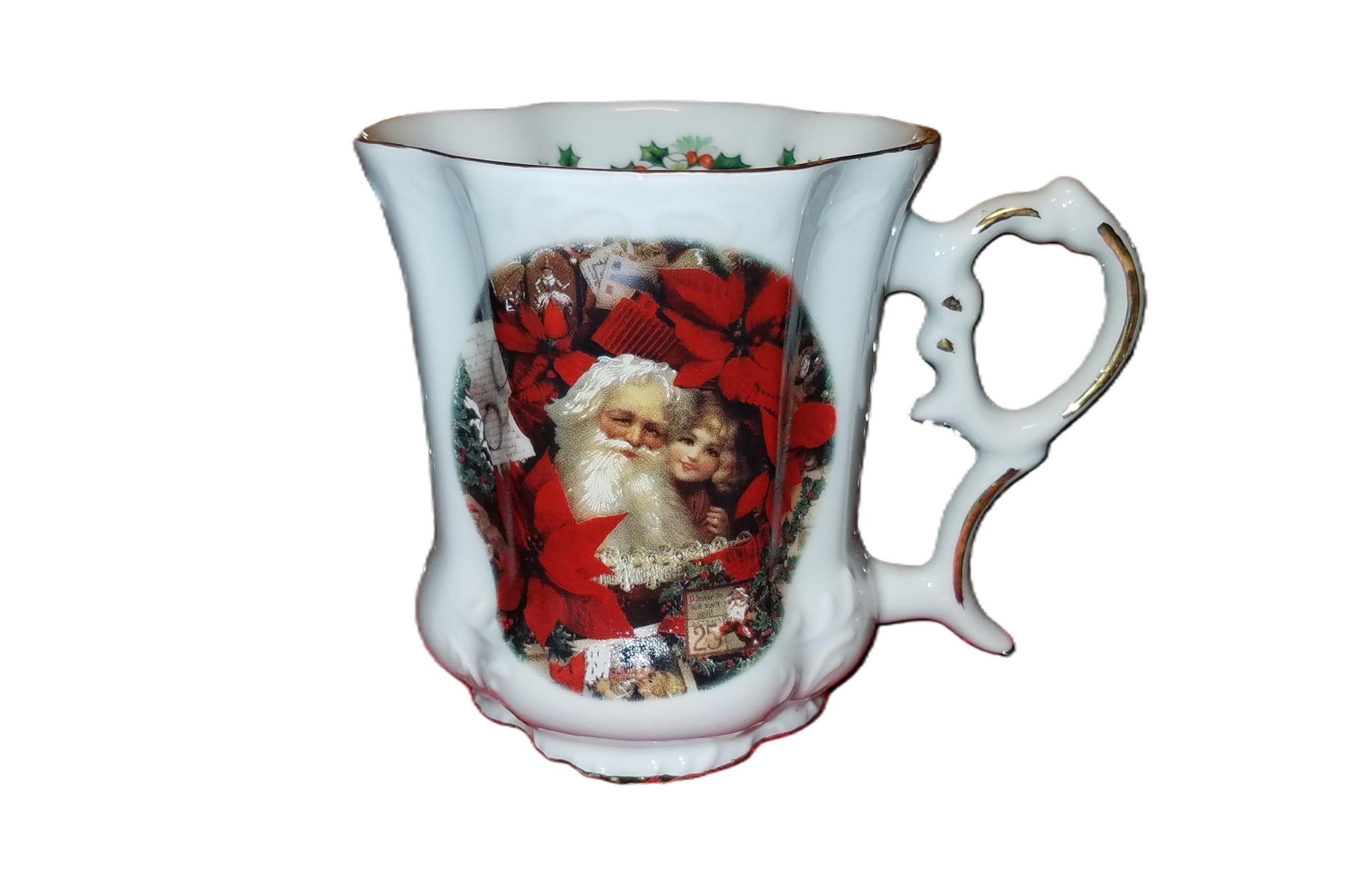 Experience the charm of the holidays with this exquisite Victorian Santa Mug, hand decorated in the United States by Fielder Keepsakes. Crafted from fine porcelain and elegantly trimmed in gold, this 3-inch diameter by 3.75-inch tall mug features an embossed Victorian design perfect for savoring your favorite tea or hot chocolate. Add a touch of vintage elegance to your festive collection and complete the look by pairing it with our other Victorian Santa items. Enjoy timeless holiday cheer in every sip.