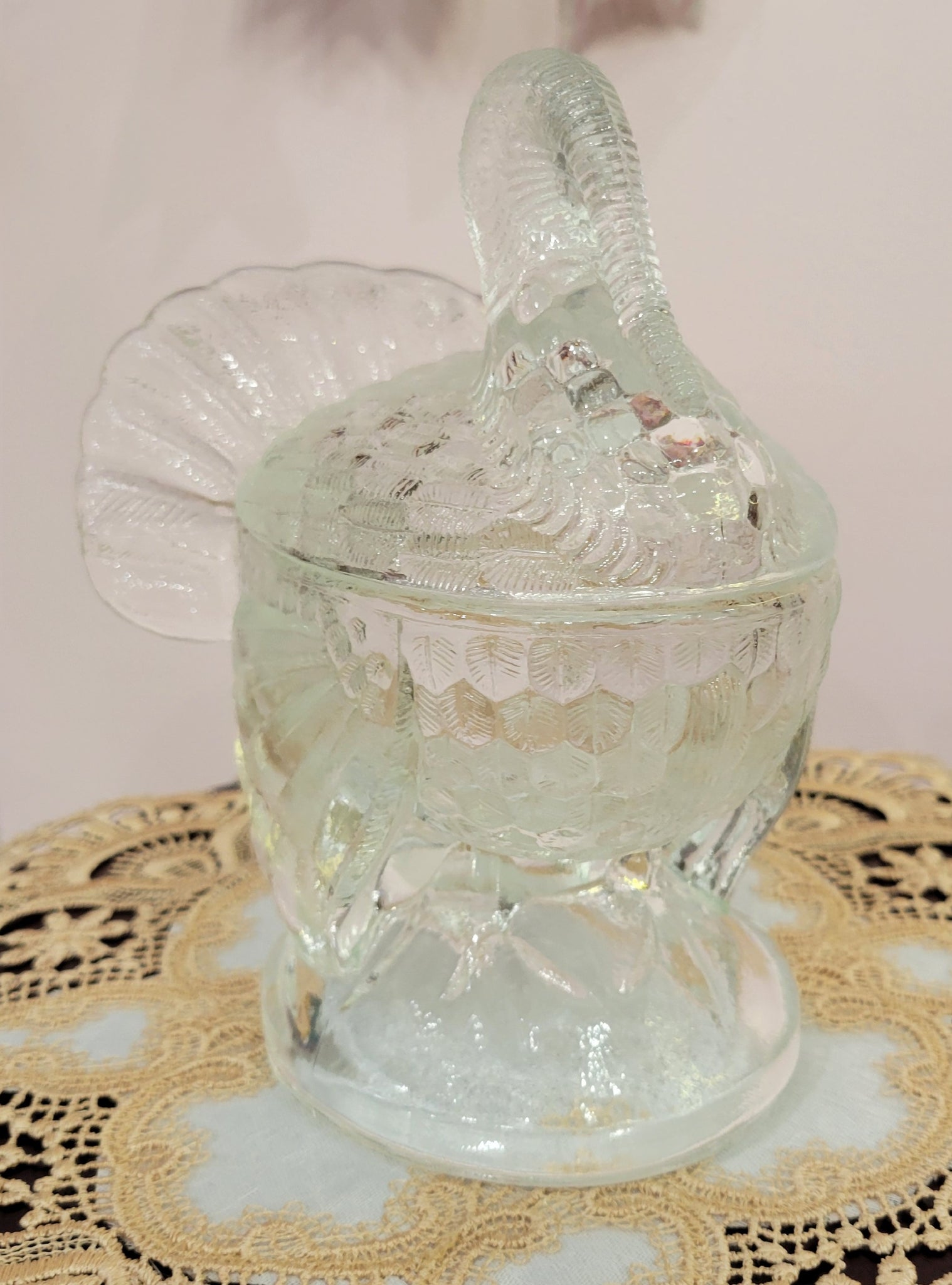 6"L X 7.5"H X 5"W pressed clear glass 2 PC turkey dish