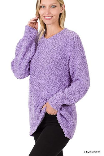 Popcorn Balloon Sleeve Pullover Sweater - Dusty Lavender