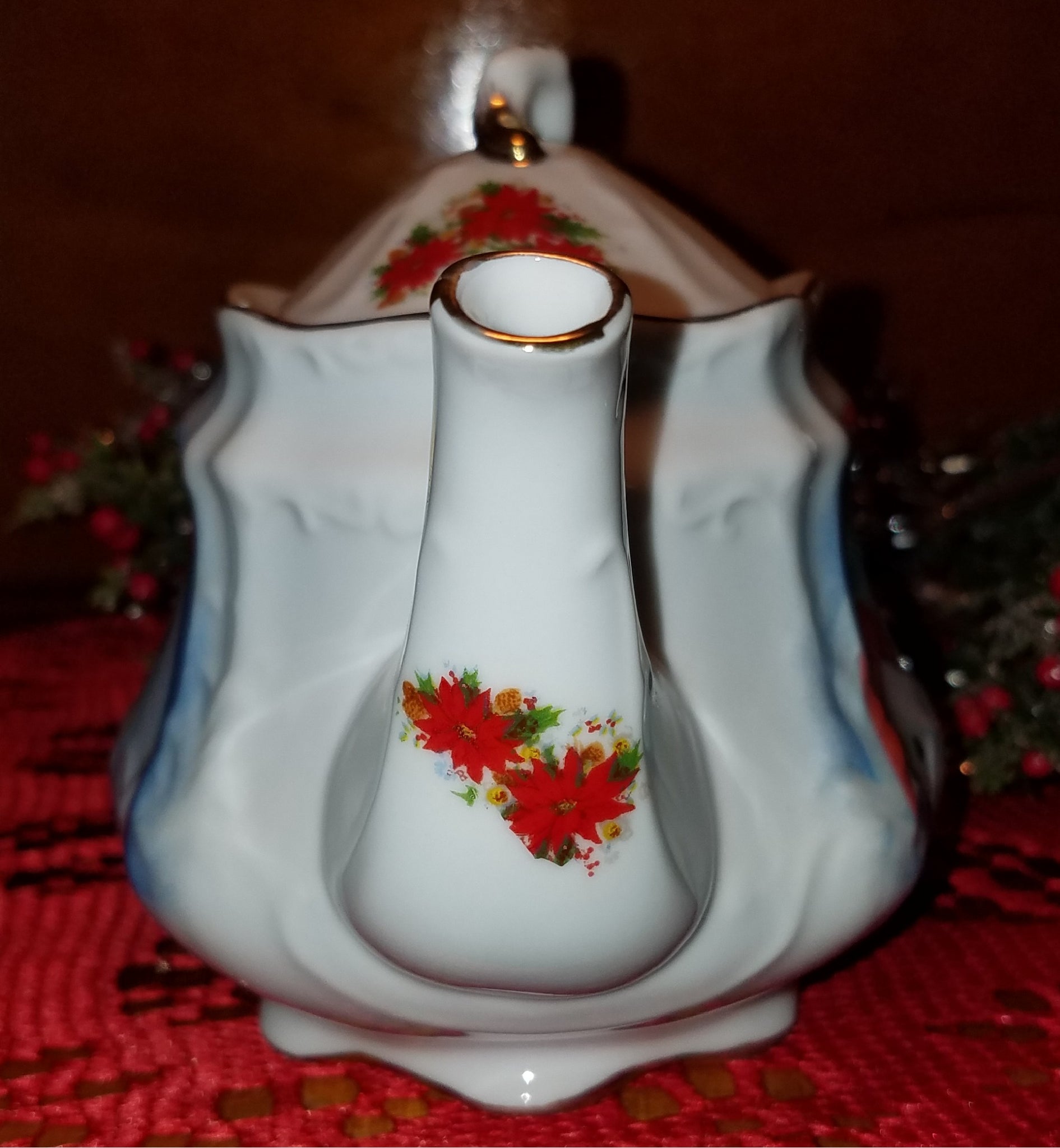This charming three-cup teapot combines elegance and festive cheer with its gold-trimmed, fine porcelain design. Embossed details and adorable Christmas seals adorn the front, while a cute polar bear decorates the back, making it perfect for holiday gatherings. Thoughtfully designed with drain holes and sized at 7" long, 5" tall, and 4.5" deep, it blends style with practical use. Hand wash only to preserve its delicate finish and keep your holiday tea moments special year after year. Pair it with the matching Christmas Seal Tall Mug - Perfect for gift giving!