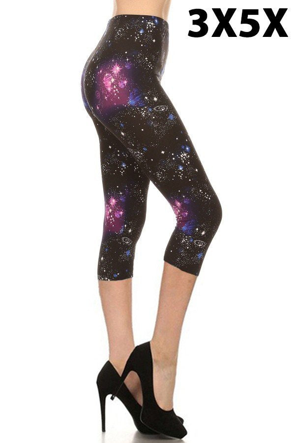 Softest Capri's you will ever wear at an affordable price! Gorgeous space print with a pink and purple haze Nebula as the featured attraction on a ready for summer cropped leg.